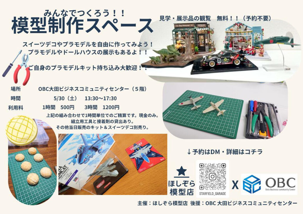 ほしぞら模型店様主催の「模型制作スペース」を開催します。
